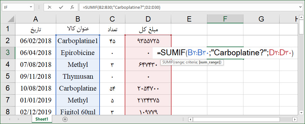 تابع SUMIF در اکسل